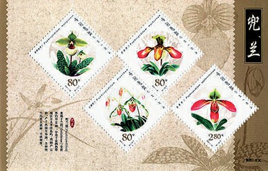 新中国的首套菱形邮票是2001年发行的《蔸兰》邮票。此后在2006年发行的《中非合作论坛北京峰会》纪念邮票,2007年发行的《2007年世界夏季特殊奥林匹克运动会》特种邮票和2009年发行的《第24届世界大学生冬季运动会》纪念邮票均为菱形邮票。值得注意的是,在菱形邮票中,将“直角立地”为正向时,通称“正菱形邮票”。与正菱形邮票相对应的是“斜菱形邮票”,斜菱形邮票是个四个边相等的平行四边形,但4个角不是直角,而由两个钝角和两个锐角构成。我国发行的四套菱形邮票都属于正菱形邮票。