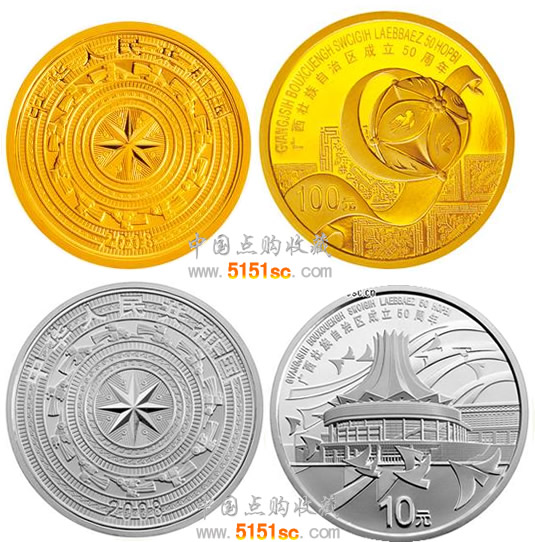 【藏品名称】2008年广西壮族自治区成立50周年金银币