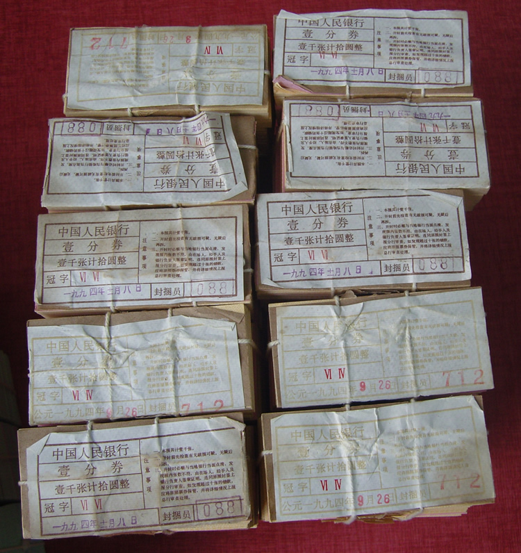 壹分 贰分 伍分整捆券 1分2分5分纸币各一捆